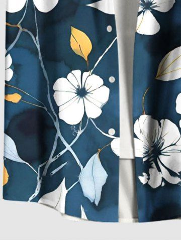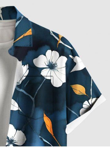 Plus Size Hibiscus Flower Leaf Ombre Print Hawaii Button Pocket Shirt For Men - Blue - 4xl
