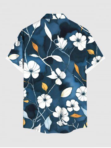 Plus Size Hibiscus Flower Leaf Ombre Print Hawaii Button Pocket Shirt For Men - Blue - 5xl