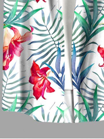 Short Sleeves Shirts > Plus Size Hibiscus Flower Leaf Print Buttons Pocket Hawaii Shirt For Men