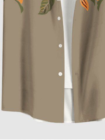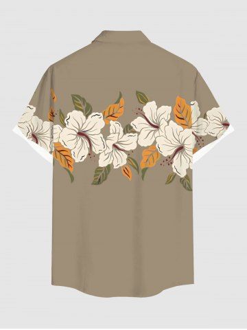 Plus Size Hibiscus Flower Leaf Print Buttons Pocket Hawaii Shirt For Men - Tan - M