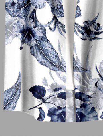 Plus Size Hibiscus Flower Leaf Print Buttons Pocket Hawaii Shirt For Men - Cadetblue - 4xl