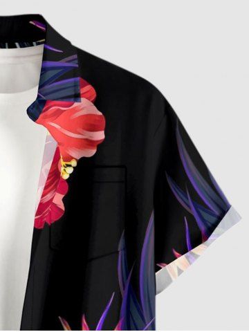 Short Sleeves Shirts > Plus Size Hibiscus Flower Leaf Print Buttons Pocket Hawaii Shirt For Men