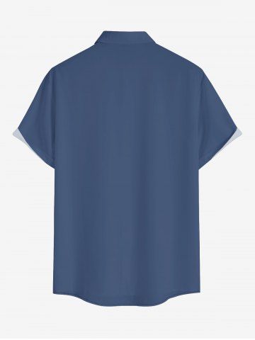 Plus Size Hibiscus Flower Leaf Print Buttons Pocket Hawaii Shirt For Men - Blue - 2xl