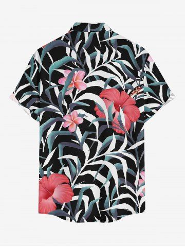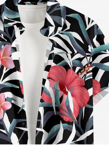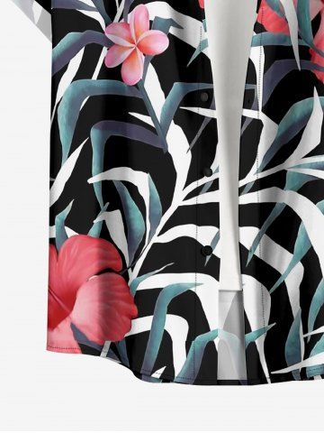 Plus Size Hibiscus Flower Leaf Print Buttons Pocket Hawaii Shirt For Men - Black - 5xl