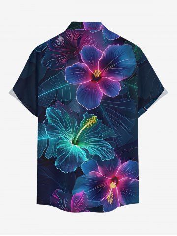 Plus Size Hibiscus Flower Leaf Print Buttons Pocket Hawaii Shirt For Men - Cadetblue - S