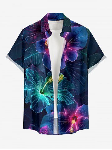 Short Sleeves Shirts > Plus Size Hibiscus Flower Leaf Print Buttons Pocket Hawaii Shirt For Men