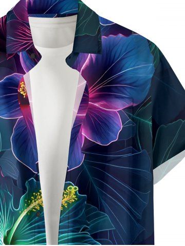 Short Sleeves Shirts > Plus Size Hibiscus Flower Leaf Print Buttons Pocket Hawaii Shirt For Men