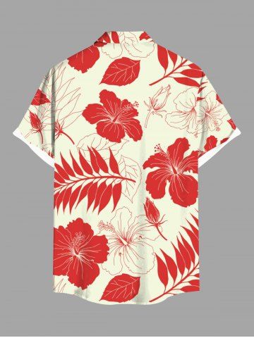 Plus Size Hibiscus Flower Leaf Tropical Print Buttons Pocket Hawaii Shirt For Men - Red - L