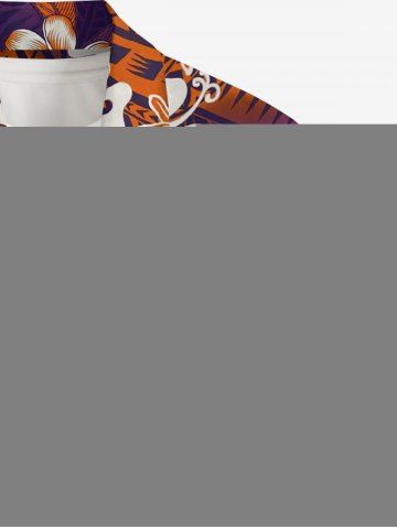 Short Sleeves Shirts > Plus Size Hibiscus Flower Leaf Tropical Print Buttons Pocket Hawaii Shirt For Men