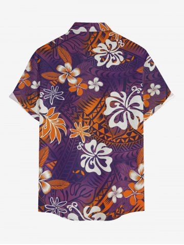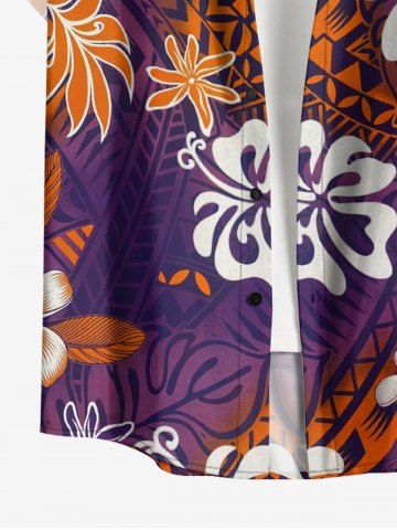 Plus Size Hibiscus Flower Leaf Tropical Print Buttons Pocket Hawaii Shirt For Men - Concord - Xl