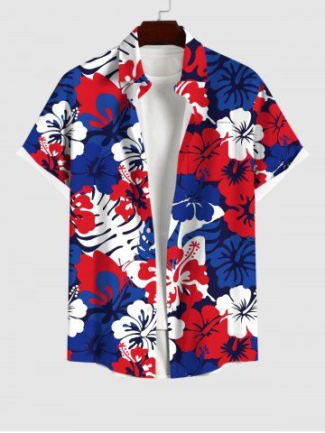 Short Sleeves Shirts > Plus Size Hibiscus Flower Palm Tree Leaf Print Buttons Pocket Hawaii Shirt For Men