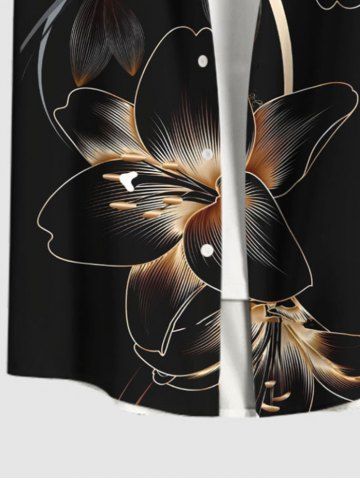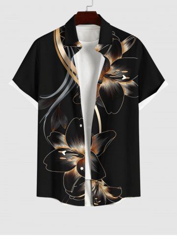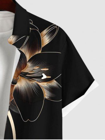 Plus Size Hibiscus Flower Print Buttons Pocket Hawaii Shirt For Men - Black - 4xl