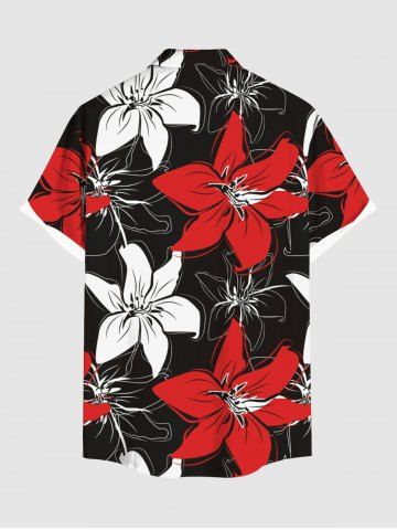 Plus Size Hibiscus Flower Print Buttons Pocket Hawaii Shirt For Men - Black - 2xl
