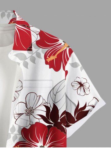 Plus Size Hibiscus Flower Print Buttons Pocket Hawaii Shirt For Men - White - 6xl
