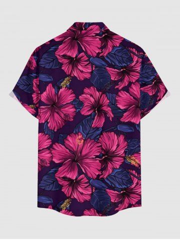 Plus Size Hibiscus Flower Print Buttons Pocket Hawaii Shirt For Men - Rose Red - 6xl
