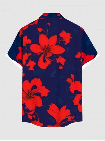 Short Sleeves Shirts > Plus Size Hibiscus Flower Print Hawaii Button Pocket Shirt For Men
