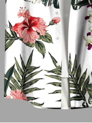Short Sleeves Shirts > Plus Size Hibiscus Flower Tropical Leaf Print Buttons Pocket Hawaii Shirt For Men