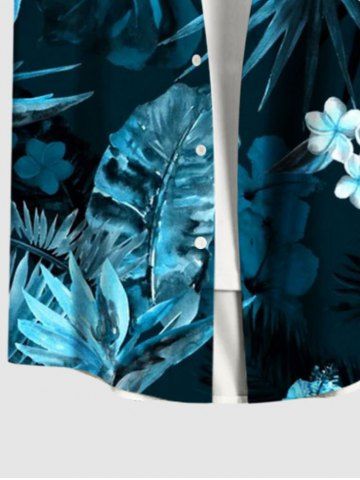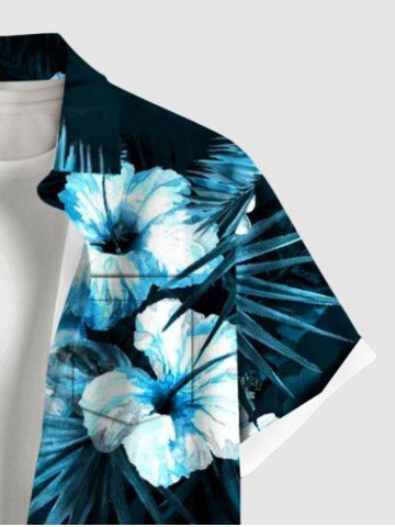 Short Sleeves Shirts > Plus Size Hibiscus Flower Tropical Leaf Print Buttons Pocket Hawaii Shirt For Men