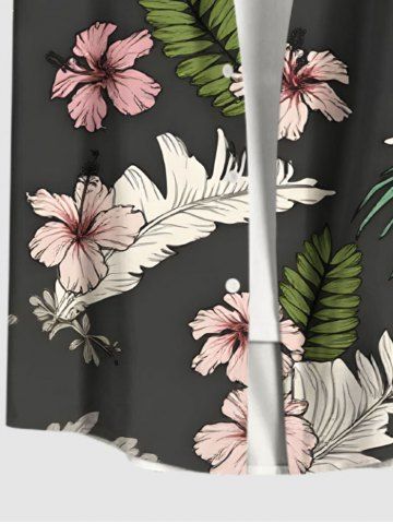 Plus Size Hibiscus Flower Tropical Leaf Print Buttons Pocket Hawaii Shirt For Men - Gray - Xl
