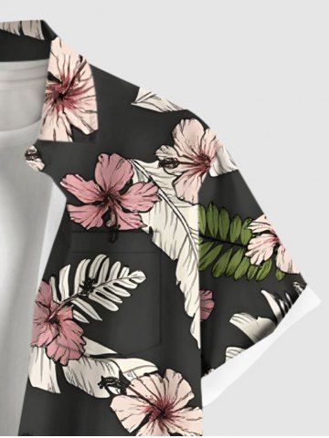 Short Sleeves Shirts > Plus Size Hibiscus Flower Tropical Leaf Print Buttons Pocket Hawaii Shirt For Men