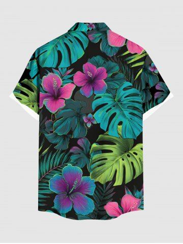 Short Sleeves Shirts > Plus Size Hibiscus Flower Tropical Leaf Print Buttons Pocket Hawaii Shirt For Men