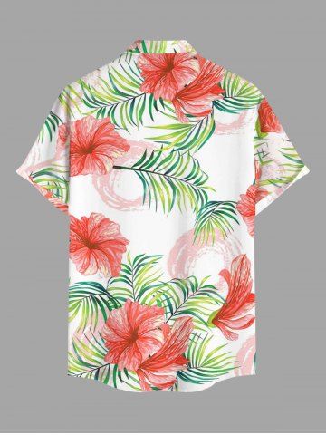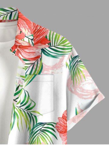 Plus Size Hibiscus Flower Tropical Leaf Print Buttons Pocket Hawaii Shirt For Men - White - 5xl