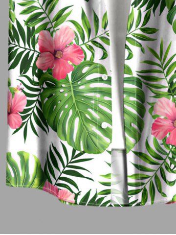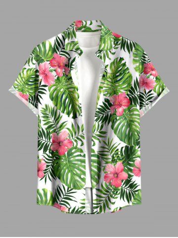 Short Sleeves Shirts > Plus Size Hibiscus Flower Tropical Leaf Print Buttons Pocket Hawaii Shirt For Men