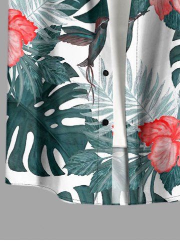 Short Sleeves Shirts > Plus Size Hibiscus Flower Tropical Leaf Print Buttons Pocket Hawaii Shirt For Men