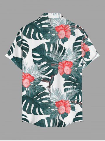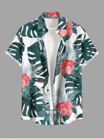 Short Sleeves Shirts > Plus Size Hibiscus Flower Tropical Leaf Print Buttons Pocket Hawaii Shirt For Men