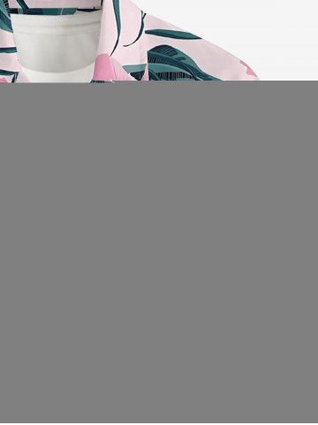 Plus Size Hibiscus Flower Tropical Leaf Print Buttons Pocket Hawaii Shirt For Men - Pink - S