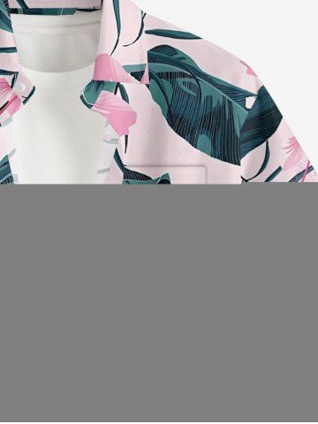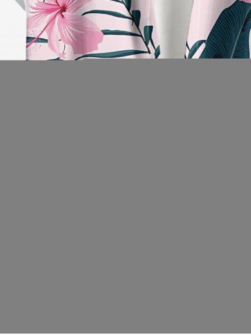 Plus Size Hibiscus Flower Tropical Leaf Print Buttons Pocket Hawaii Shirt For Men - Pink - Xl