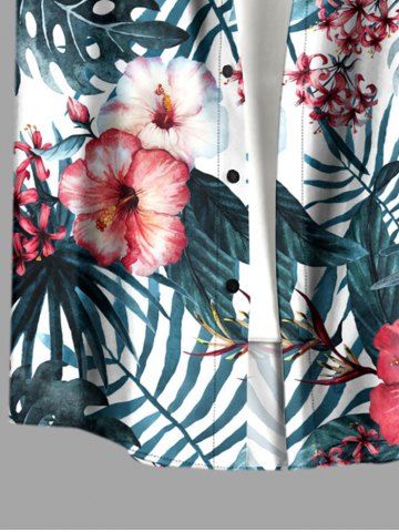Short Sleeves Shirts > Plus Size Hibiscus Flower Tropical Leaf Print Buttons Pocket Hawaii Shirt For Men