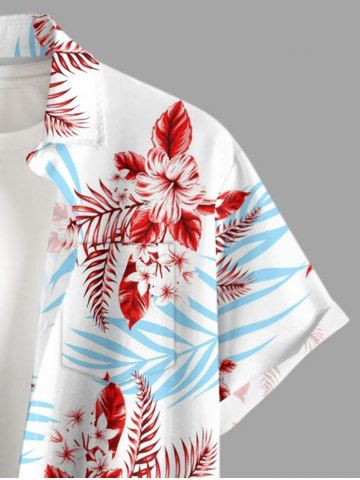 Short Sleeves Shirts > Plus Size Hibiscus Flower Tropical Leaf Print Buttons Pocket Hawaii Shirt For Men