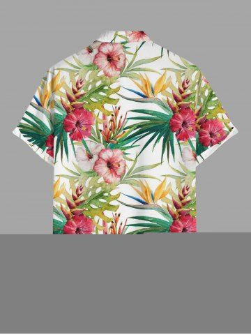 Short Sleeves Shirts > Plus Size Hibiscus Flower Tropical Leaf Print Buttons Pocket Hawaii Shirt For Men