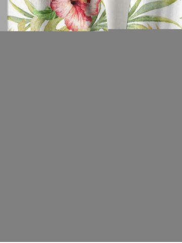 Plus Size Hibiscus Flower Tropical Leaf Print Buttons Pocket Hawaii Shirt For Men - Green - M