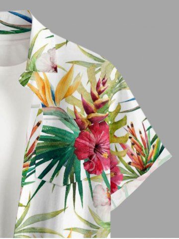 Short Sleeves Shirts > Plus Size Hibiscus Flower Tropical Leaf Print Buttons Pocket Hawaii Shirt For Men