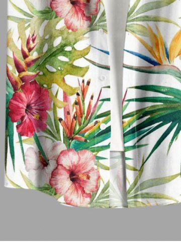Short Sleeves Shirts > Plus Size Hibiscus Flower Tropical Leaf Print Buttons Pocket Hawaii Shirt For Men