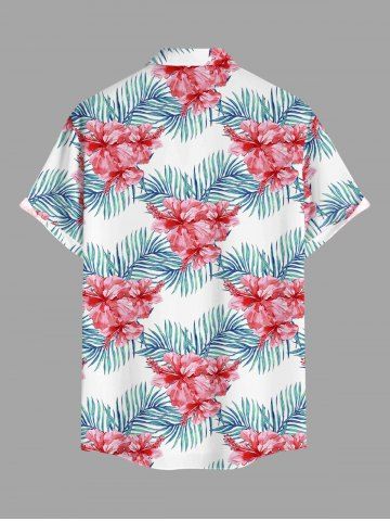 Plus Size Hibiscus Flower Tropical Leaf Print Buttons Pocket Hawaii Shirt For Men - Hot Pink - S