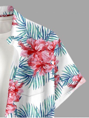 Short Sleeves Shirts > Plus Size Hibiscus Flower Tropical Leaf Print Buttons Pocket Hawaii Shirt For Men
