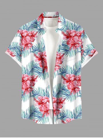 Short Sleeves Shirts > Plus Size Hibiscus Flower Tropical Leaf Print Buttons Pocket Hawaii Shirt For Men
