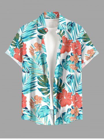 Short Sleeves Shirts > Plus Size Hibiscus Flower Tropical Leaf Print Buttons Pocket Hawaii Shirt For Men