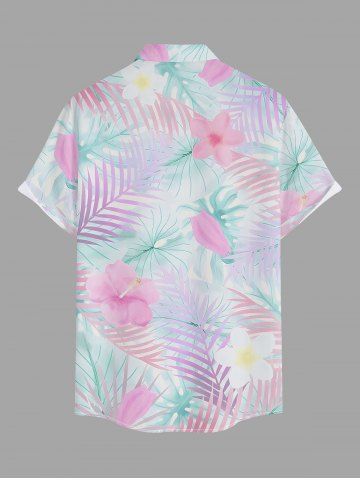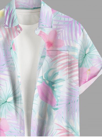 Short Sleeves Shirts > Plus Size Hibiscus Flower Tropical Leaf Print Buttons Pocket Hawaii Shirt For Men