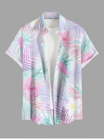 Short Sleeves Shirts > Plus Size Hibiscus Flower Tropical Leaf Print Buttons Pocket Hawaii Shirt For Men