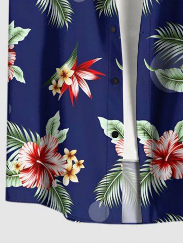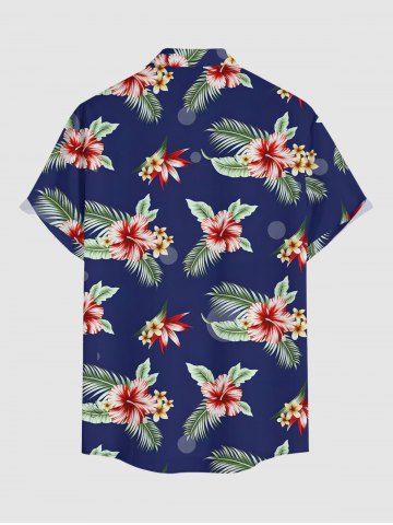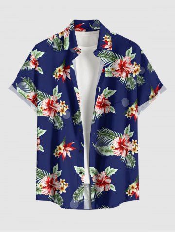 Short Sleeves Shirts > Plus Size Hibiscus Flower Tropical Leaf Print Buttons Pocket Hawaii Shirt For Men