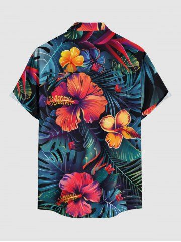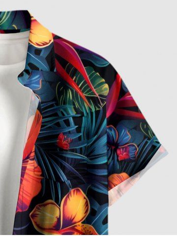 Short Sleeves Shirts > Plus Size Hibiscus Flower Tropical Leaf Print Buttons Pocket Hawaii Shirt For Men