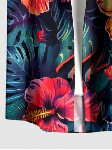 Short Sleeves Shirts > Plus Size Hibiscus Flower Tropical Leaf Print Buttons Pocket Hawaii Shirt For Men