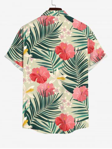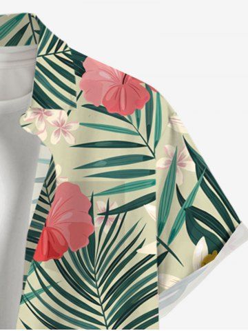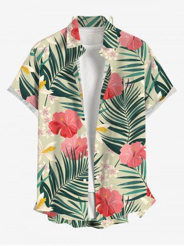 Short Sleeves Shirts > Plus Size Hibiscus Flower Tropical Leaf Print Buttons Pocket Hawaii Shirt For Men