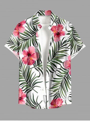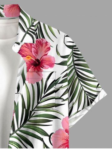 Short Sleeves Shirts > Plus Size Hibiscus Flower Tropical Leaf Print Buttons Pocket Hawaii Shirt For Men