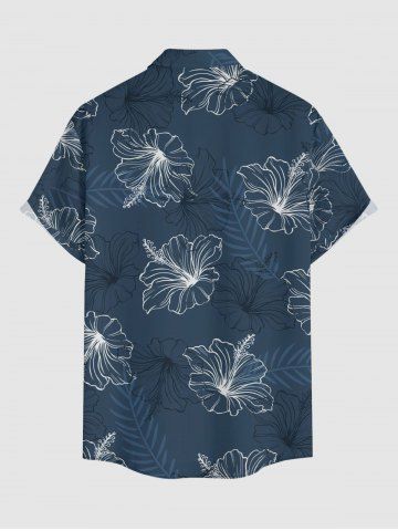 Plus Size Hibiscus Flower Tropical Leaf Print Buttons Pocket Hawaii Shirt For Men - Cadetblue - L