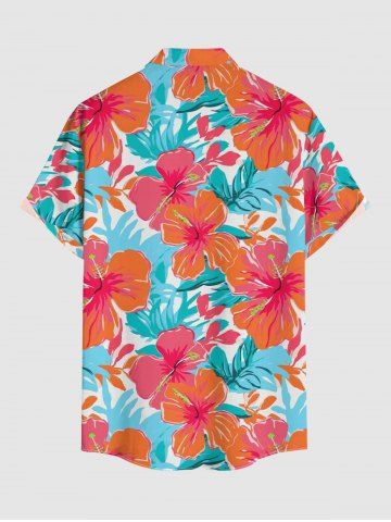 Short Sleeves Shirts > Plus Size Hibiscus Flower Tropical Leaf Print Buttons Pocket Hawaii Shirt For Men